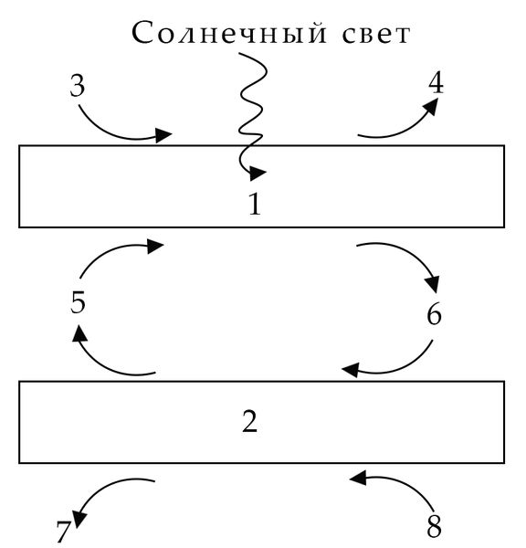 Каким номером на схеме обозначено вещество, в котором непосредственно запасается энергия солнечного света?