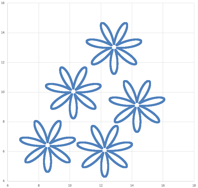 Учёный решил провести кластеризацию некоторого множества звёзд по их расположению на карте звёздного неба. Кластер звёзд – это набор звёзд (точек) на графике, образующий цветы на небесном полотне. Каждая звезда обязательно принадлежит только одному из кластеров.