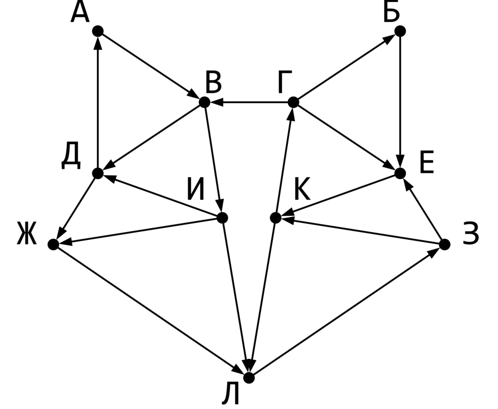 На рисунке представлена схема дорог, связывающих пункты По каждой дороге можно передвигаться только в направлении, указанном стрелкой.