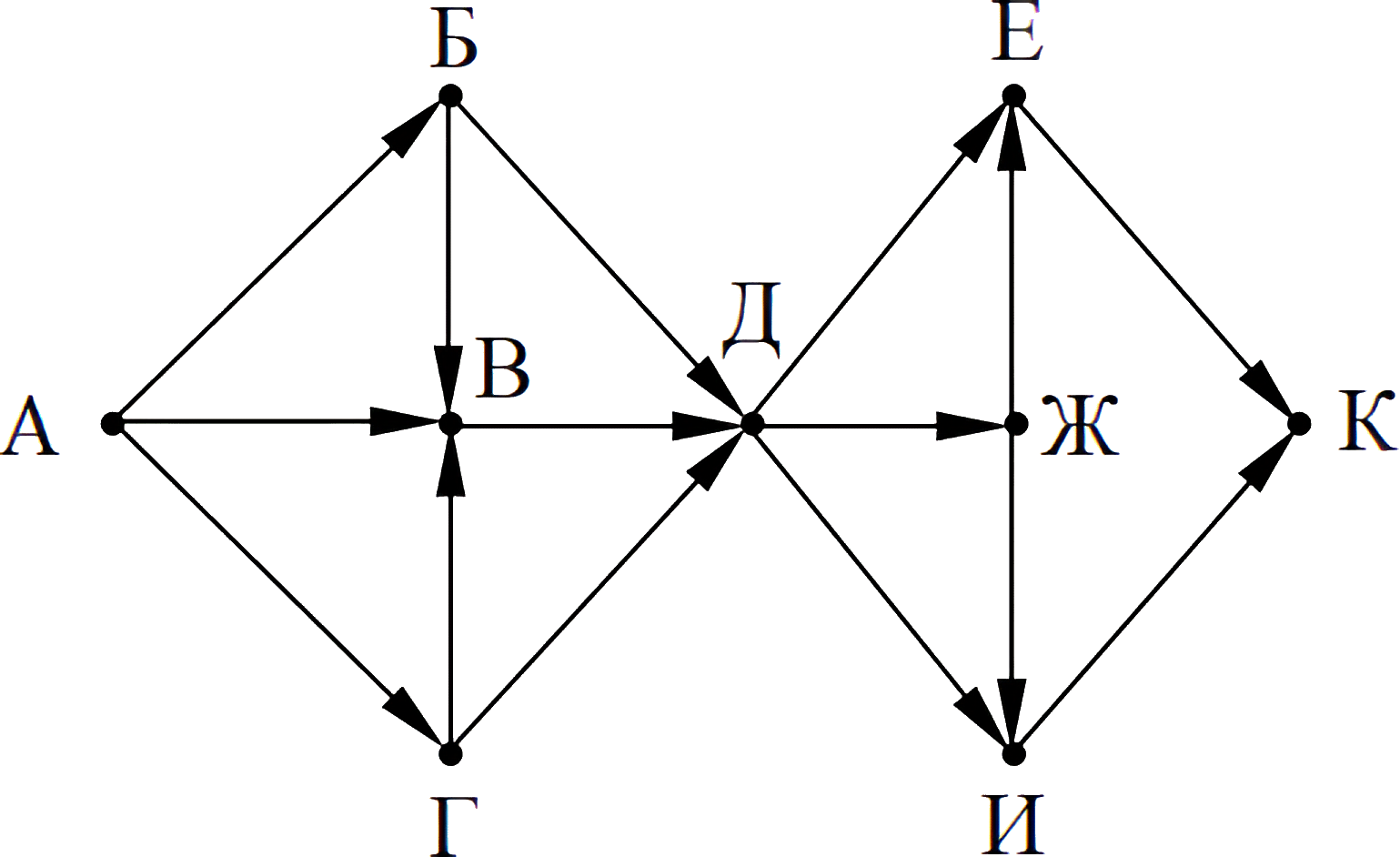 На рисунке — схема дорог, связывающих пункты А, Б, В, Г, Д, Е, Ж, И, К.