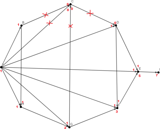 Зачеркнём те дороги, по которым нам двигаться нельзя. (Те, которые идут в город C или выходят из него)