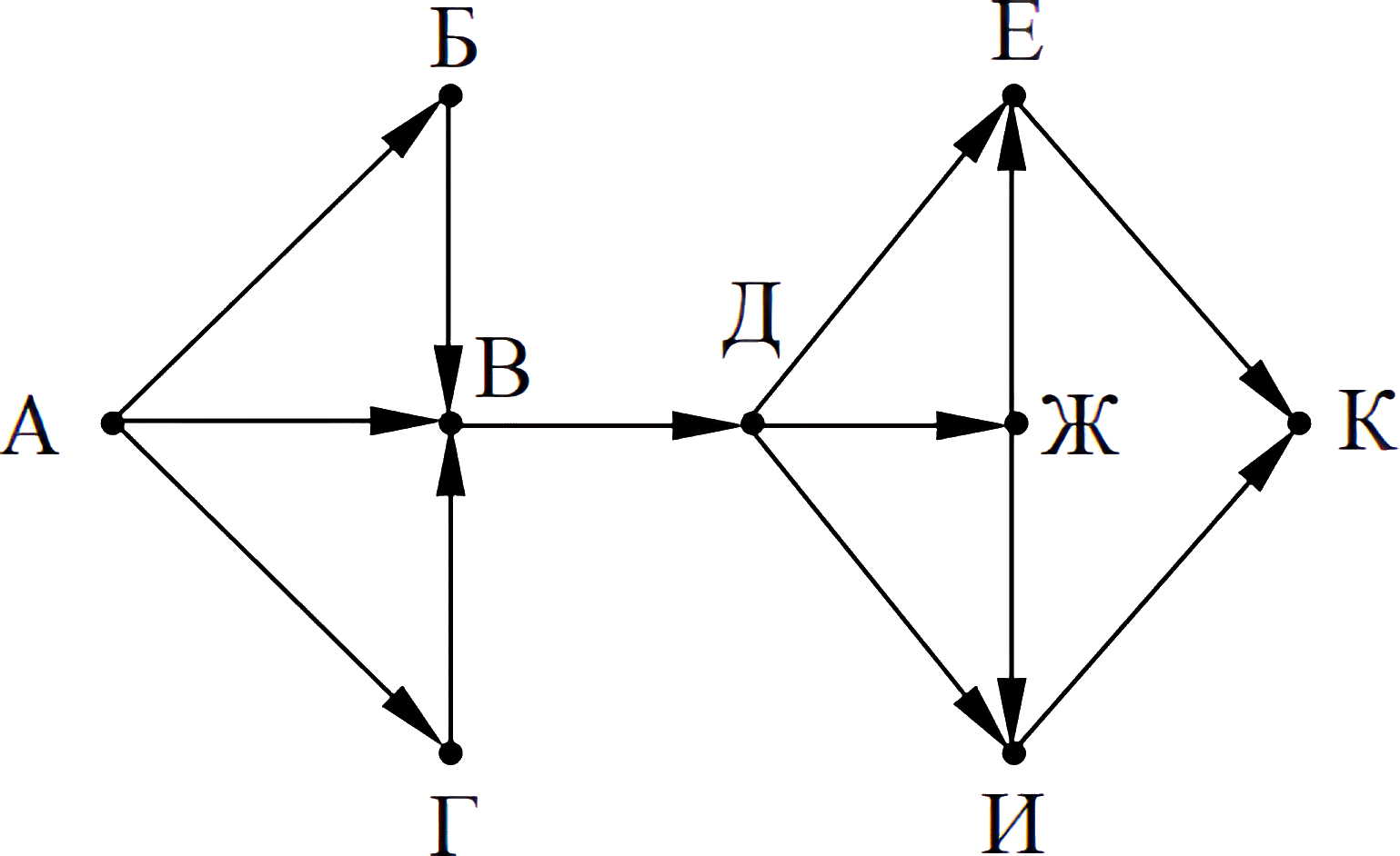На рисунке — схема дорог, связывающих пункты А, Б, В, Г, Д, Е, Ж, И, К.