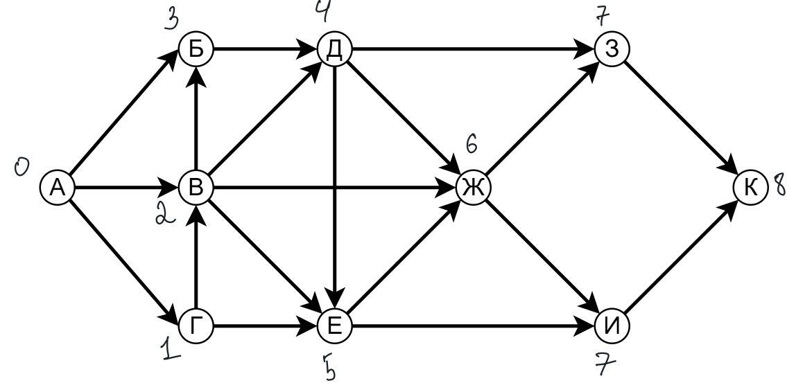 На рисунке представлена схема дорог между населенными пунктами По каждой дороге можно двигаться только в одном направлении, указанном стрелкой.