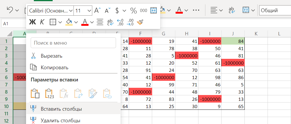 Добавляем пустой столбец (нажимаем правой кнопкой мыши на столбец и выбираем Вставить).