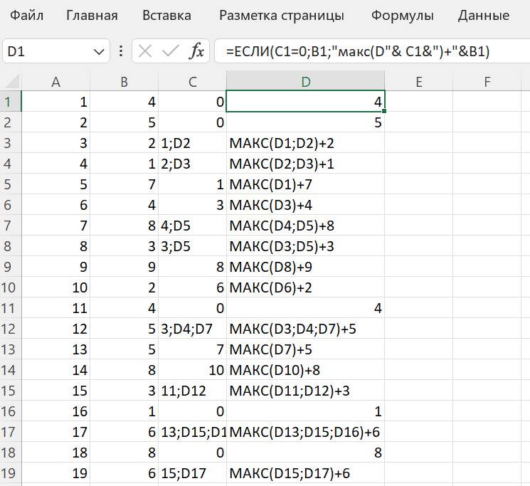 В ячейку записываем формулу =ЕСЛИ(C1=0;B1;»МАКС(D»