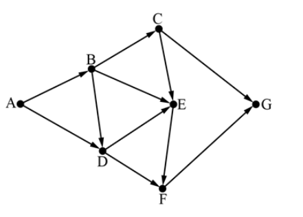 На рисунке – схема дорог, связывающих города A, B, C, D, E, F, G. По каждой дороге можно двигаться только в одном направлении, указанном стрелкой. Сколько существует различных путей из города A в город G?