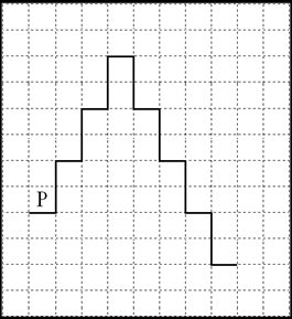 На бесконечном поле имеется лестница. Сначала лестница слева направо поднимается вверх, затем спускается вниз. Высота каждой ступени – две клетки, ширина – одна клетка. Робот находится на нижней ступеньке лестницы слева.