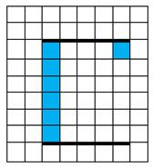 Напишите для Робота алгоритм, закрашивающий все клетки крайнего левого ряда, расположенные между стенами, и клетку, расположенную у правого края под верхней горизонтальной стеной. Робот должен закрасить только клетки, удовлетворяющие данному условию. Например, для приведённого выше рисунка Робот должен закрасить следующие клетки (см. рисунок):