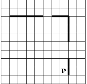 На рисунке указан один из возможных способов расположения стен и Робота (Робот обозначен буквой «Р»).