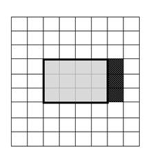 Напишите для Робота алгоритм, закрашивающий клетки, расположенные правее прямоугольного препятствия и прилегающие к нему. Робот должен закрасить только клетки, удовлетворяющие данному условию. Например, для приведённого выше рисунка Робот должен закрасить следующие клетки (см. рисунок):