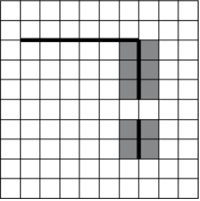 Напишите для Робота алгоритм, закрашивающий все клетки, расположенные непосредственно левее и правее вертикальной стены. Проход должен остаться незакрашенным. Робот должен закрасить только клетки, удовлетворяющие данному условию. Например, для приведённого выше рисунка Робот должен закрасить следующие клетки (см. рисунок).