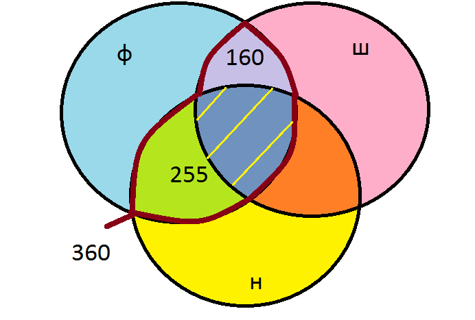 Финляндия & Швеция & Норвегия = Финляндия & Швеция + Финляндия & Норвегия — Финляндия & (Швеция | Норвегия) = 160 + 255 — 360 = 55