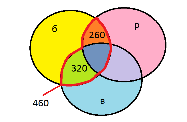 Бюффон & Руссо & Вольтер = (Бюффон & Вольтер) + (Бюффон & Руссо) — (Бюффон & (Руссо | Вольтер) = 320 + 260 — 460 = 120