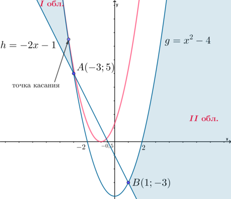 имела одну общую точку с границей области II, лежащей ниже оси абсцисс. Следовательно, она должна проходить через точку