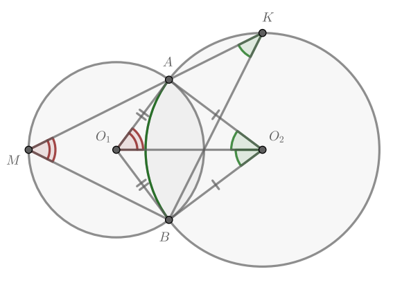 — соответственно вписанный и центральный, опирающиеся на малую дугу