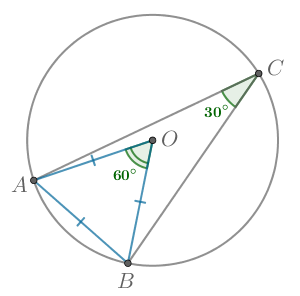 Найдите величину острого вписанного угла, опирающегося на хорду, равную радиусу окружности. Ответ дайте в градусах.