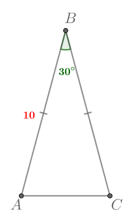 Угол при вершине, противолежащей основанию равнобедренного треугольника, равен Боковая сторона треугольника равна
