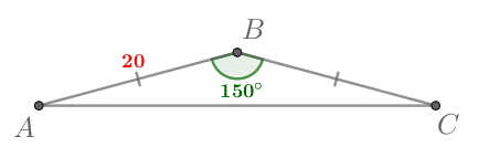 Угол при вершине, противолежащей основанию равнобедренного треугольника, равен Боковая сторона треугольника равна