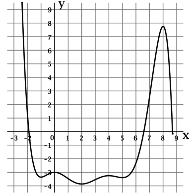 Так как на рисунке изображен график функции, то точки экстремума — это точки на графике, в которых функция меняется с возрастания на убывание или наоборот. Эти точки: 0; 2; 4; 5; 8. Из них на отрезке