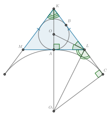 б) Сразу заметим, что , так как соответствующие радиусы перпендикулярны касательным. Кроме того,