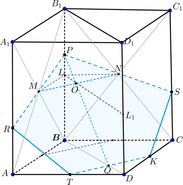 а) Доказать, что сечение параллелепипеда плоскостью — пятиугольник.