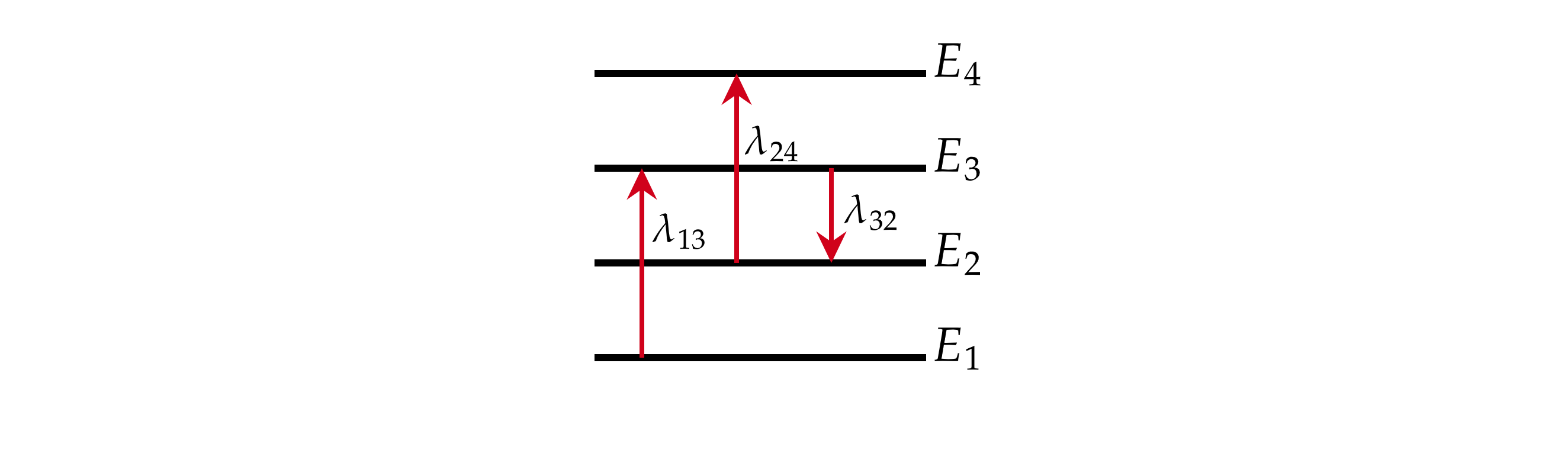 На рисунке изображены несколько энергетических уровней атома и указаны длины волн фотонов, излучаемых и поглощаемых при переходах с одного уровня на другой.
