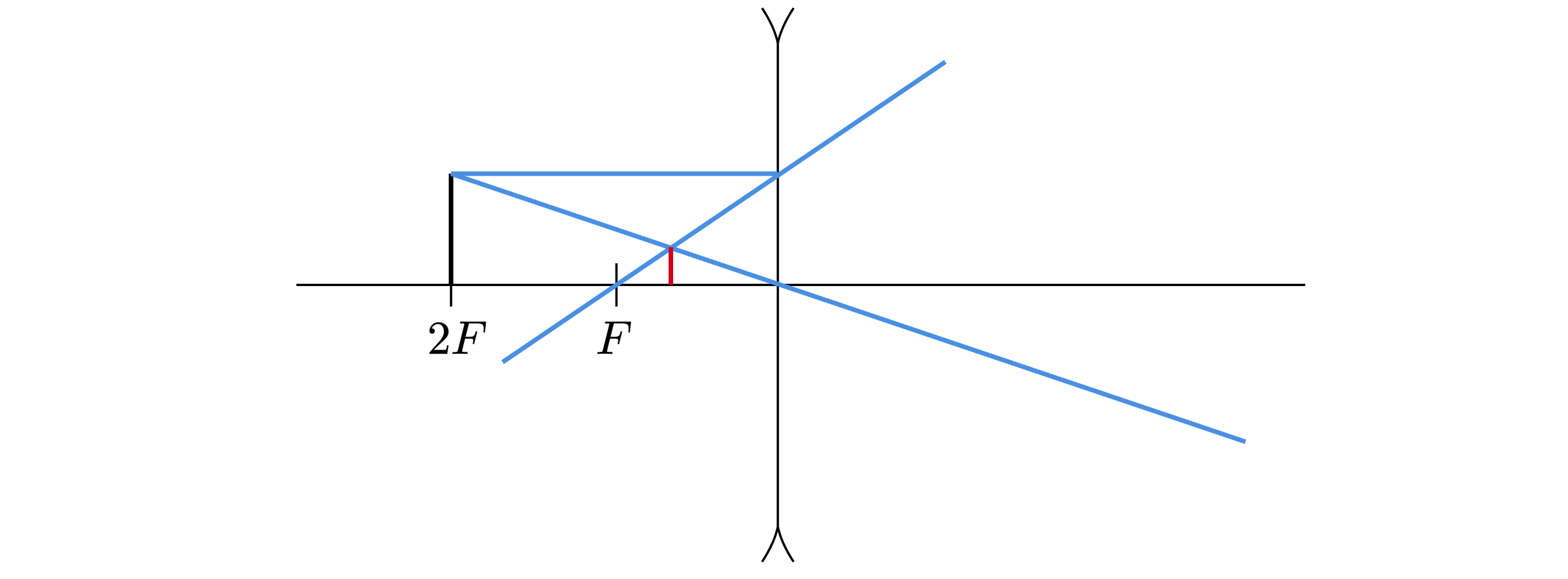 А) Рассеивающая линза с фокусным расстоянием формирует мнимое прямое, уменьшенное изображение предмета (см. красная отметка на рисунке ниже), расположенного на расстоянии больше фокусного, в частности,