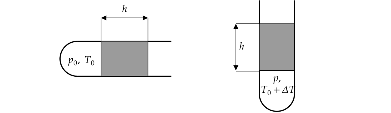 В горизонтальной трубке, запаянной с одного конца, помещена ртуть, длина столбика которой Столбик ртути отделяет воздух в трубке от атмосферы. Трубку расположили вертикально запаянным концом вниз и нагрели на