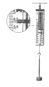 Погрешность прямого измерения силы динамометром, на котором висит груз, равна цене деления. Каков вес груза? Ответ дайте в Н.